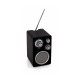 Altavoz radio de diseño vintage con dial, botón de encendido/apagado, control de volumen y entrada auxiliar mediante cable de conexión jack de 3,5mm -incluido-. Alimentación a pilas: 4xAA no incluidas.
