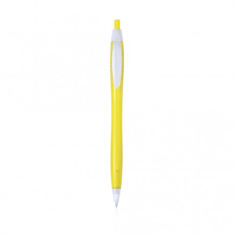 Bolígrafo de mecanismo pulsador de atrevido diseño bicolor y cuerpo curvado, de suave acabado en divertidos colores translúcidos y con clip plano. Tinta azul.