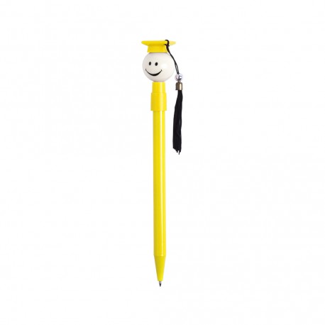 Divertido bolígrafo para los graduados en variada gama de vivos colores. Con pom pom de tela y tinta azul.