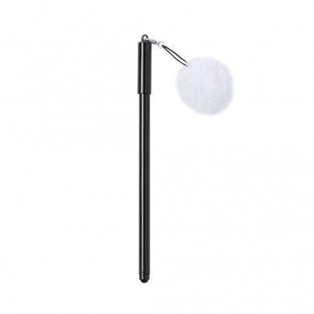 Llamativo bolígrafo pompón con capucha y tinta gel. Cuerpo en color negro de acabado frosted y disponible con pompón en color blanco o rosa. De cartucho jumbo y en tinta azul.