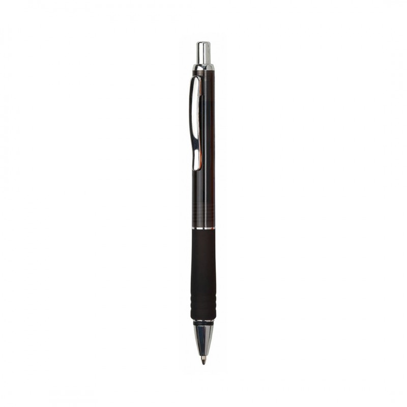 Bolígrafo de mecanismo pulsador de elegante diseño bicolor con accesorios en color plateado brillante y cuerpo de suave acabado en llamativos colores translúcidos. Con cómoda empuñadura a juego, clip metálico curvado y anilla a juego. Tinta azul.