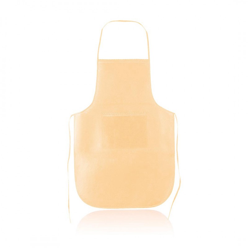 Delantal de non-woven en variada gama de vivos colores. Con bolsillo frontal y cintas de ajuste. De corte por encima de la rodilla.