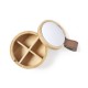 Joyero de línea nature fabricado en bambú. Con 4 compartimentos interiores, tapa con tirador de PU y espejo 1X de 6cm de diámetro integrado en tapa. Con film protector y presentado en caja individual de diseño eco.
