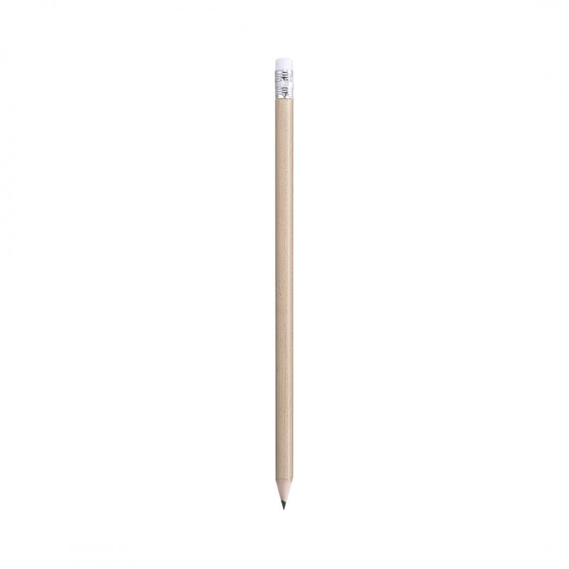 Lápiz de madera con cuerpo redondo, de acabado brillo en divertidos colores variados y con goma de borrar. Punta afilada.
