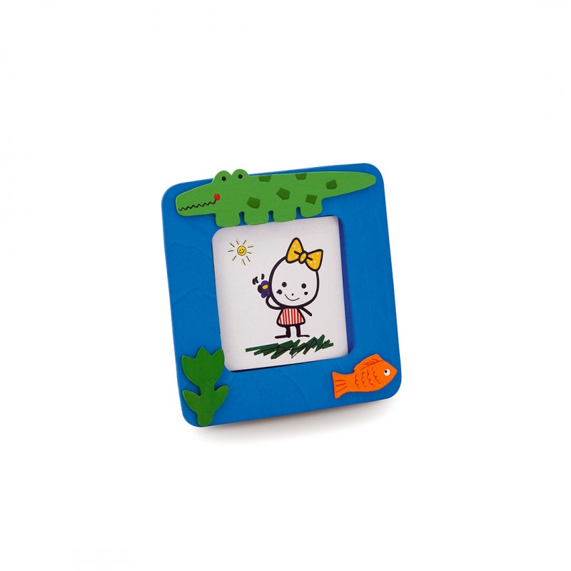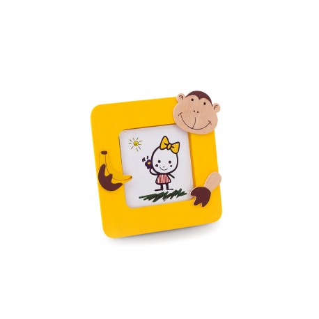 Portafotos en madera natural con divertidos diseños de animales. Para fotos de hasta 6,2x6,2cm.