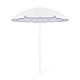 Sombrilla de playa de 8 paneles de resistente nylon en variada gama de vivos colores. De 150cm de diámetro, con faldones laterales ribeteados, tubos metalizados en color blanco y ajustable en altura. Presentada en funda de PVC con cinta de transporte para hombro.