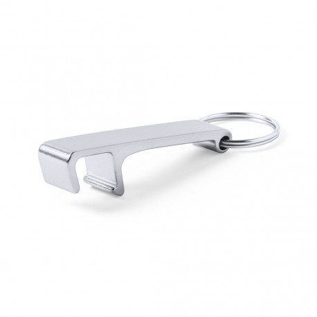 Llavero soporte para smartphone y tablet fabricado en aluminio de acabado mate, especialmente diseñado para marcaje en láser. Presentación individual en bolsita autocierre.