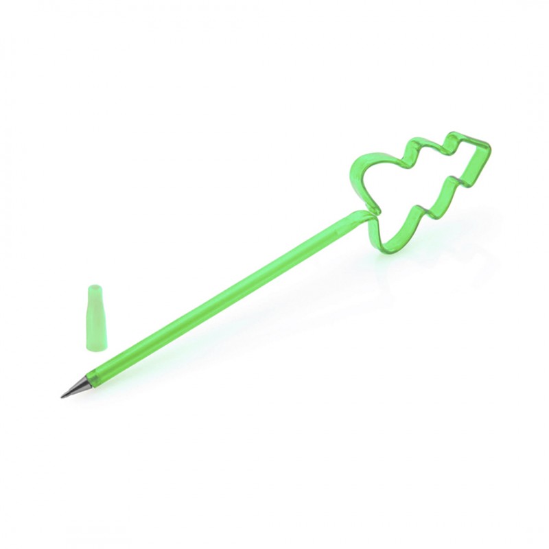 Original bolígrafo de diseño navideño con forma de árbol de navidad en vivos colores de acabado translúcido. Con capucha a juego y tinta azul.