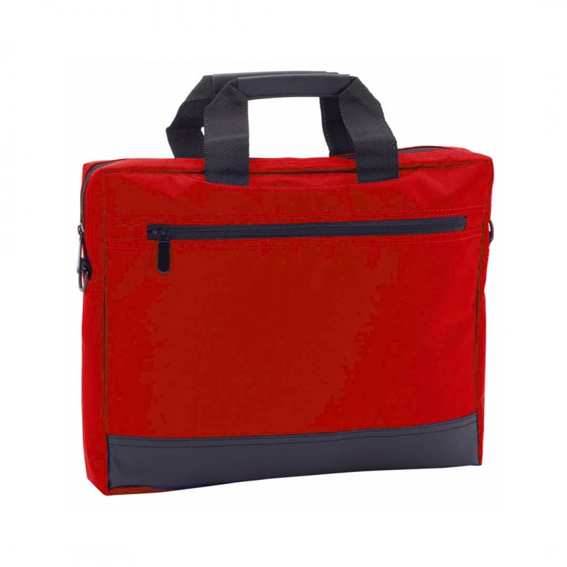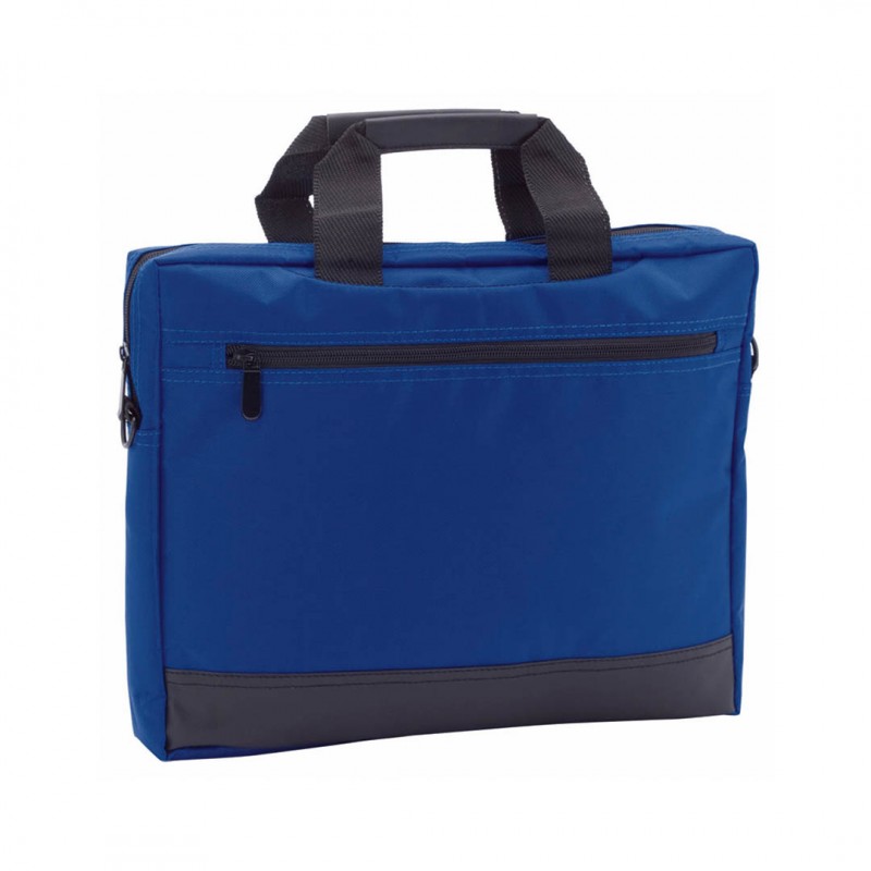 Resistente portadocumentos de poliéster 420D con cierre de cremallera y bolsillo frontal. En elegante acabado bicolor, con asas reforzadas, bolsillo acolchado interior para portátil de hasta 14 pulgadas y cinta bandolera ajustable con refuerzo acolchado para hombro.