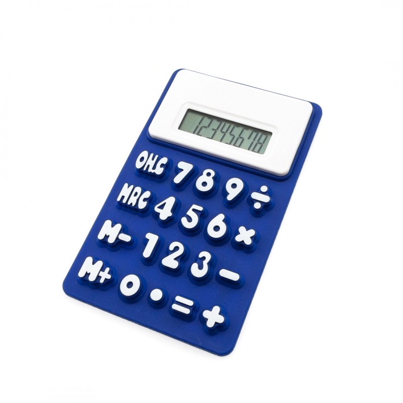 Original calculadora flexible de 8 dígitos. Con cuerpo de silicona en vivos colores y suaves teclas integradas. Pilas de botón incluidas con film protector y presentada en original estuche transparente.