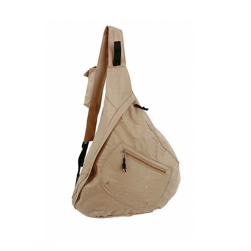 Mochila bandolera en resistente poliéster 600D de desenfadado diseño en variada gama de colores, con cierre de cremallera a juego y bolsillo frontal de tirador con cinta para fácil apertura. Accesorios en color negro, esquinas reforzadas y cinta bandolera regulable con bolsillo de cierre de velcro para smartphone y ajuste con mosquetón.