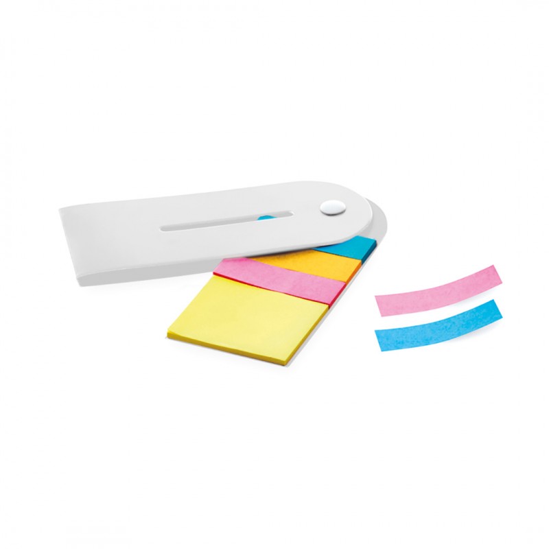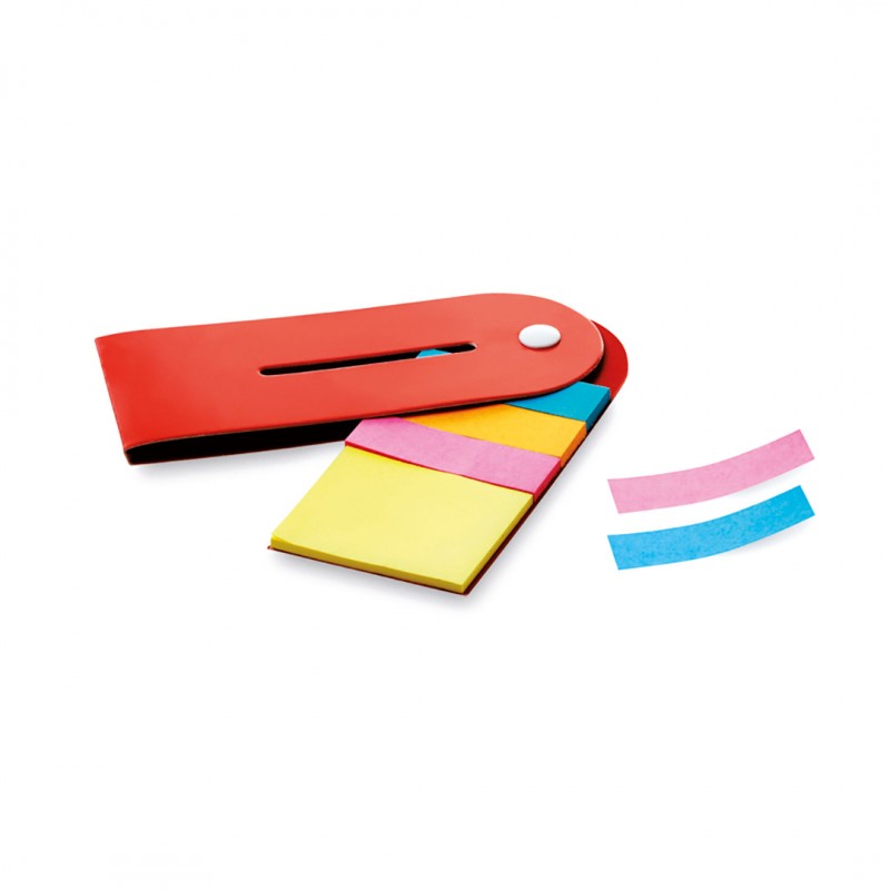 Bloc de notas adhesivas con original apertura giratoria y tapa troquelada de suave tacto acabada en cartón reciclado de variados colores. Con 25 notas adhesivas grandes y 90 mini notas adhesivas.