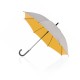 Paraguas de 8 paneles en original combinación de parte exterior en color plateado e interior en variada gama de vivos colores. De 102cm de diámetro, con apertura automática y en resistente material poliéster. Con varillas metálicas en color negro, cierre de velcro y suave mango en color negro.