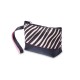 Monedero de original diseño cebra con suave cuerpo acabado en brillante PVC bicolor. Compartimento principal con cierre de cremallera a juego y cinta de transporte en combinación de color negro y rosa.