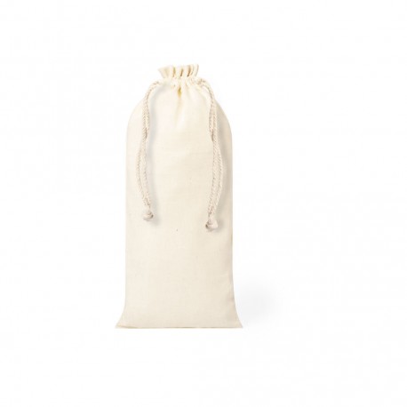 Bolsa de línea nature en material 100% algodón de 105g/m2. Tamaño 12x33 cm, de acabado cosido y con cordones autocierre de algodón. Especialmente diseñada para packaging en botellas y termos.