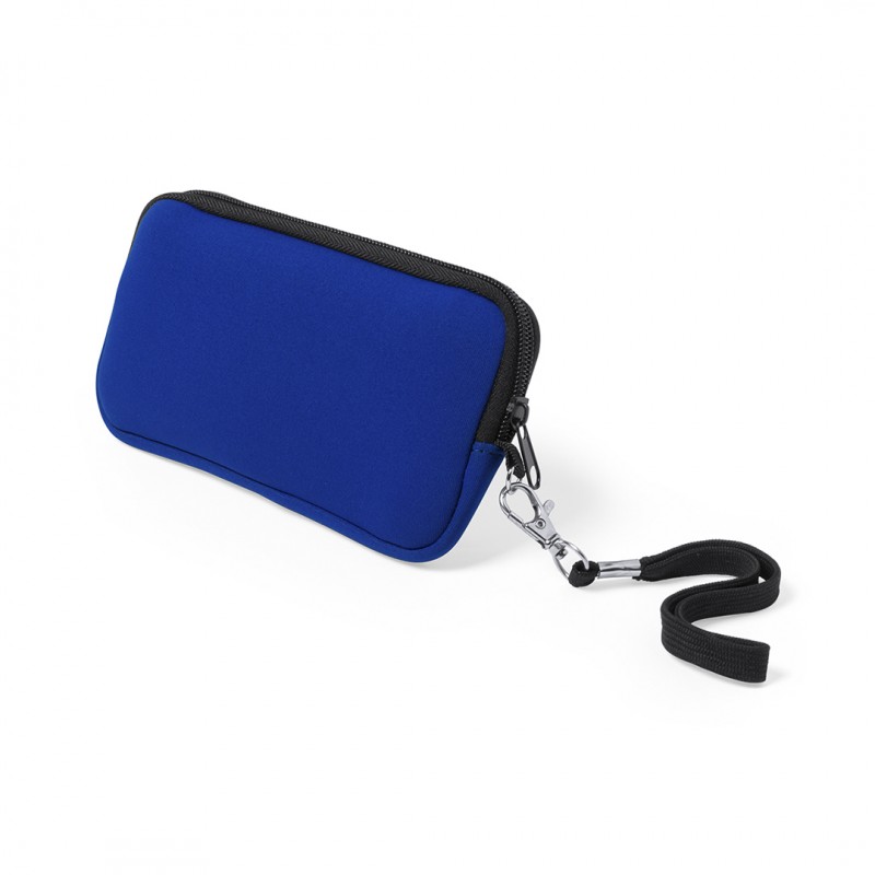 Funda soporte para dispositivos móviles en suave neopreno y en atrevidos colores. Con cierre de cremallera y cinta de transporte con cierre de mosquetón, se convierte en un práctico soporte al abrirla. Presentada en bolsa de diseño.