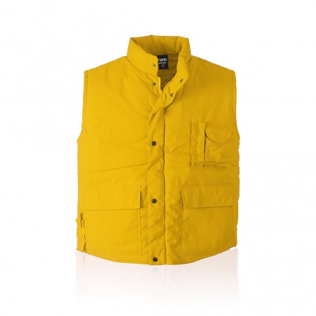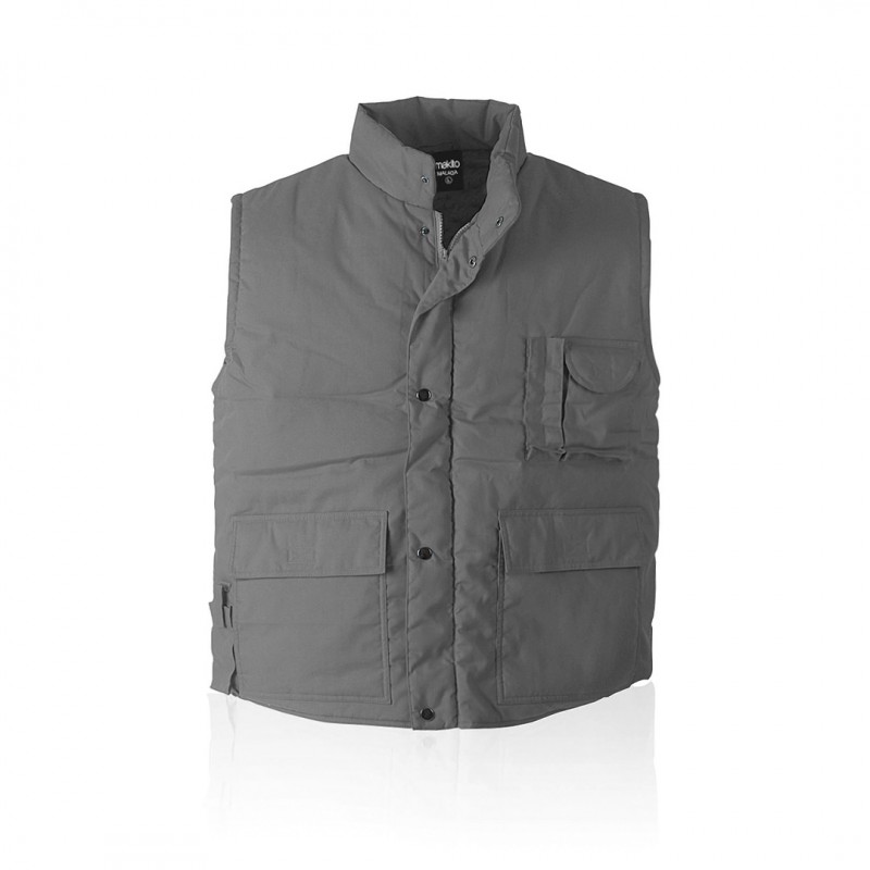 Chaleco de trabajo en cálido y resistente material, combinación de algodón y poliéster. Con acolchado, doble cierre de corchetes metálicos y cremallera con cinta en tirador. Amplios bolsillos frontales y laterales y funda para smartphone. Disponible en tallas M, L, XL, XXL.