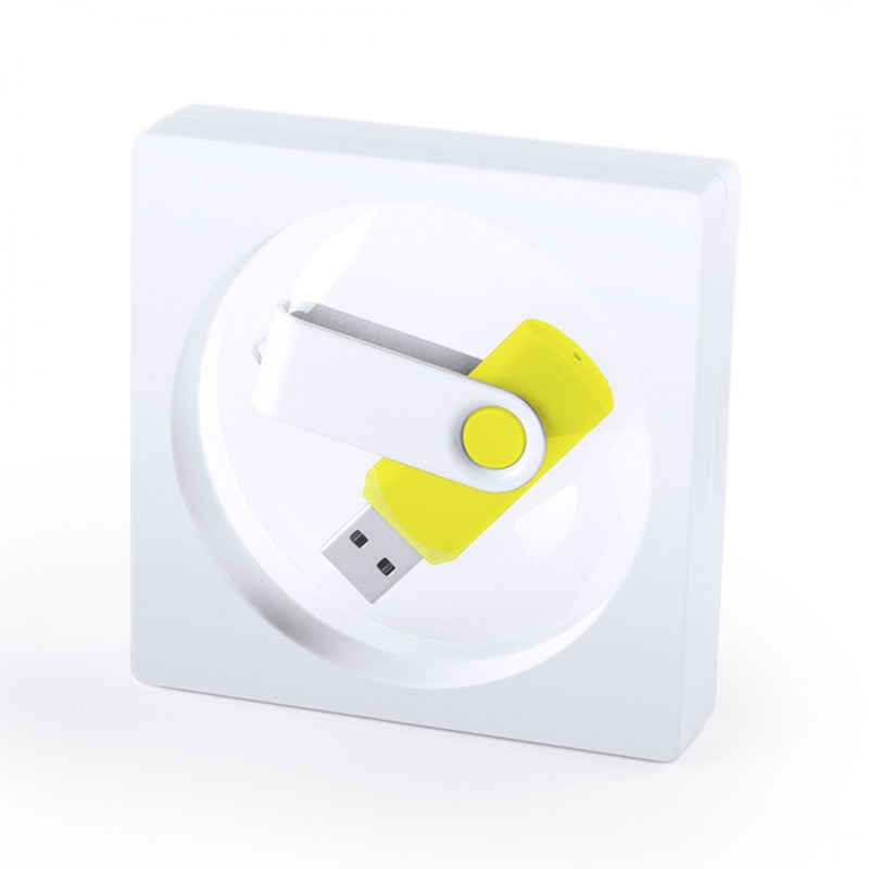 Memoria USB de 8GB de capacidad, con mecanismo giratorio, cuerpo de suave acabado y clip metálico blanco en acabado brillante. Presentada en estuche film individual.